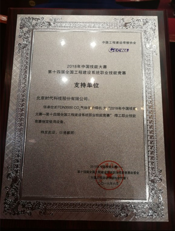 2019年5月29日-6月2日,第十四屆全國工程建設系統職業技能競賽在天下第一雄關-嘉峪關成功舉辦,本屆競賽由中國就業培訓技術指導中心、中國工程建設焊接協會主辦,甘肅鋼鐵職業技術學院、甘肅冶金技術學院承辦,北京時代科技股份有限公司是本屆賽事的支持單位。中國工程建設焊接協會副會長、北京時代科技股份有限公司總裁鮑云杰參加開幕式。來自全國化建、電建、石化、建工、船舶工業、冶金、石油、水利水電、院校等22省市19個行業80個企業101個代表隊282名選手將參加本次競賽。北京時代科技股份有限公司生產的全數字氣保焊機TDN3500做為此次競賽的指定用機。